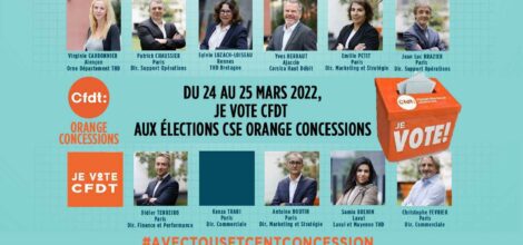 || ELECTIONS || du Comité Social et Economique - 24 et 25 mars 2022. La CFDT est Première organisation syndicale chez Orange Concessions avec 57,73% des suffrages.