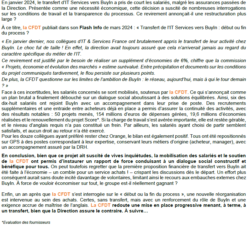Bilan sur le projet de transfert des activités IT et services France de GPS vers BuyIn