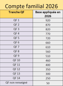 Le Compte Familial : Véritable pilier de notre politique sociale, il est reconduit. Son montant est calculé selon votre Quotient Familial (QF) pour plus d’équité.