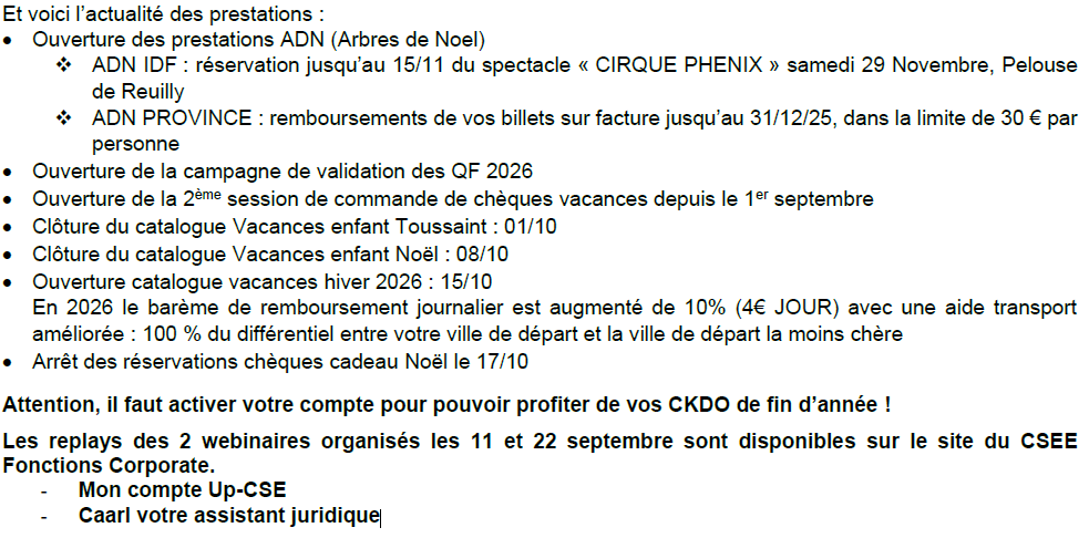 FLASH INFO /CSEE Fonctions Corporate 8 octobre 2025